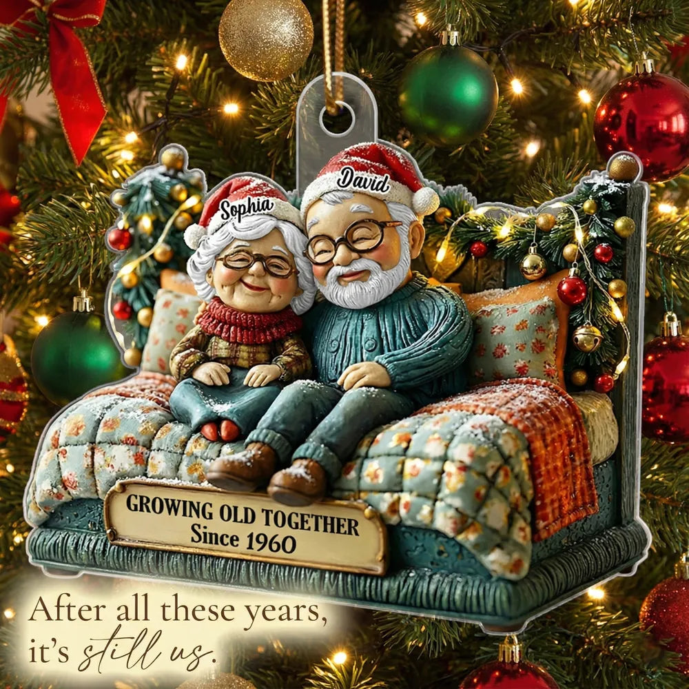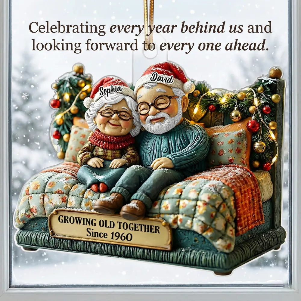 Growing Old Together Old Couple - Personalized Acrylic Ornament - Heartwarming Christmas Gift For Him, For Her, For Couple