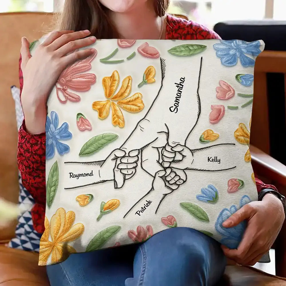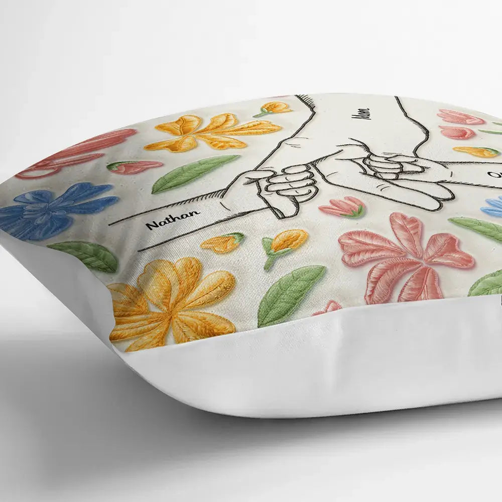 Hand In Hand, I Will Always Protect You - Faux Embroidered Effect Printed Fabric, Personalized Pillow