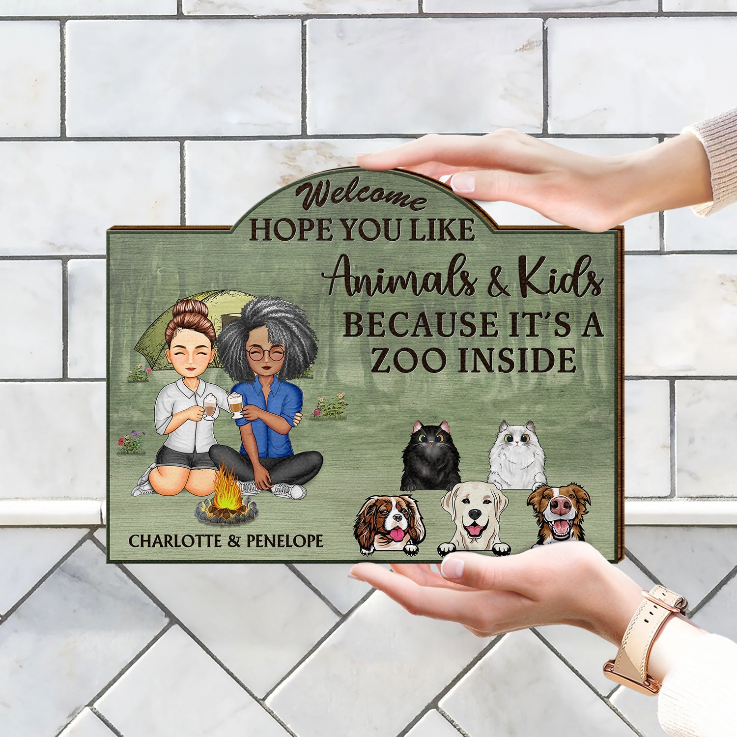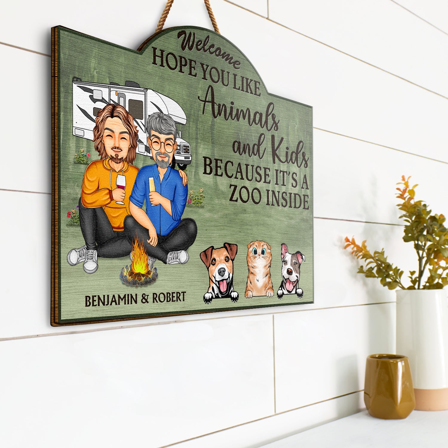 Hope You Like Animals And Kids - Gift For Camping Lovers, Couple, Family, Parents, Pet Lovers - Personalized Custom Shaped Wood Sign