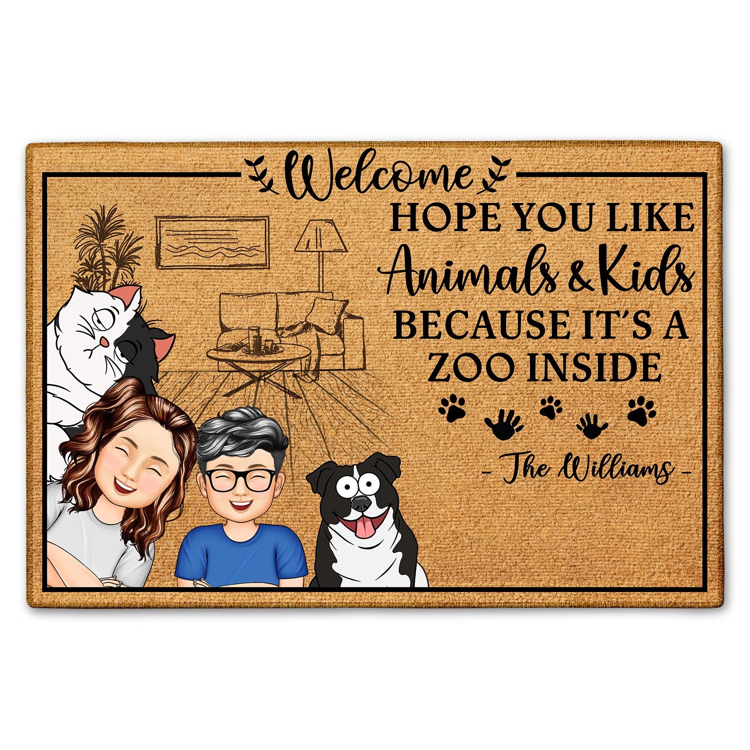 Hope You Like Animals And Kids - Home Decor For Family, Couples, Pet Lovers - Personalized Doormat