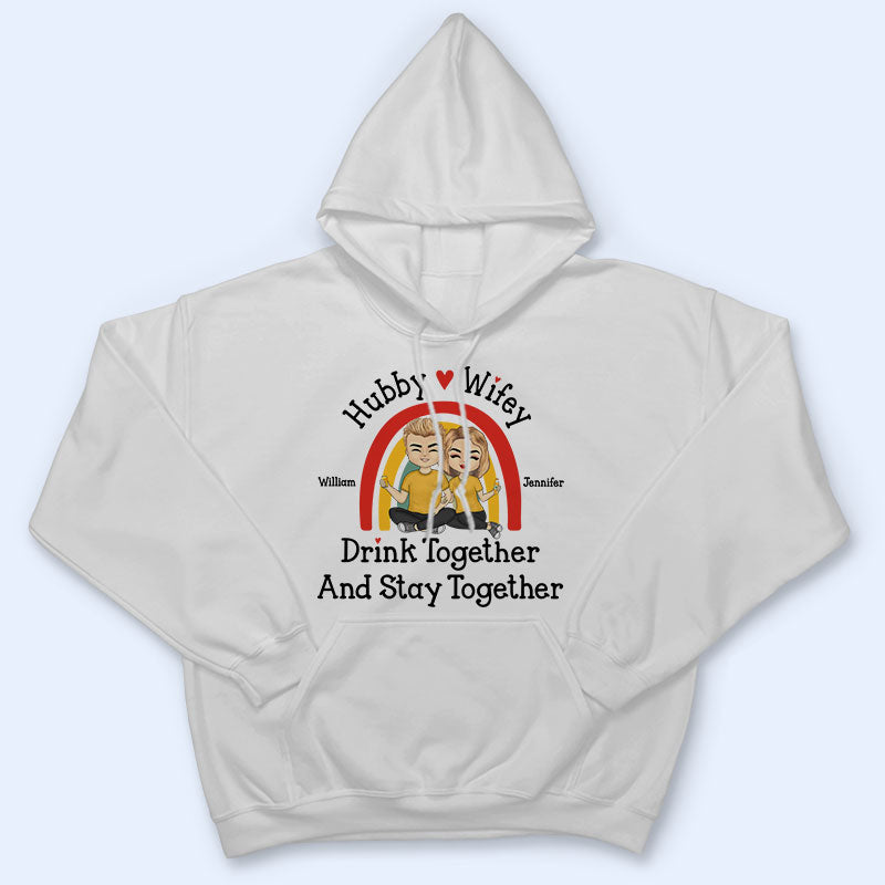 Hubby And Wifey Drink Together Stay Together - Gift For Couples - Personalized Custom T Shirt