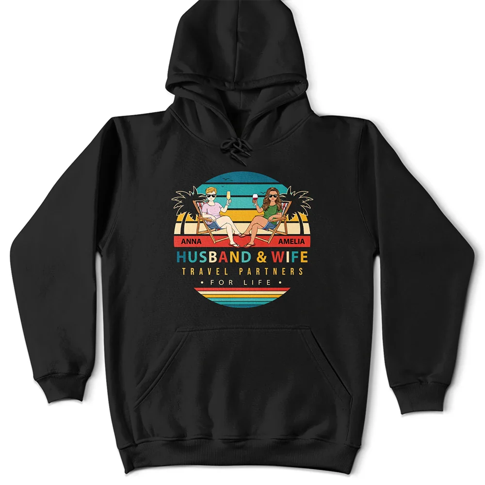 Embrace your adventures together with the "Husband And Wife Travel Partners For Life" Retro Beach Family Couple Personalized T-Shirt, a fun and stylish statement for couples who love to explore. This unique t-shirt isn’t just apparel; it’s a personalized tribute to your shared journey.