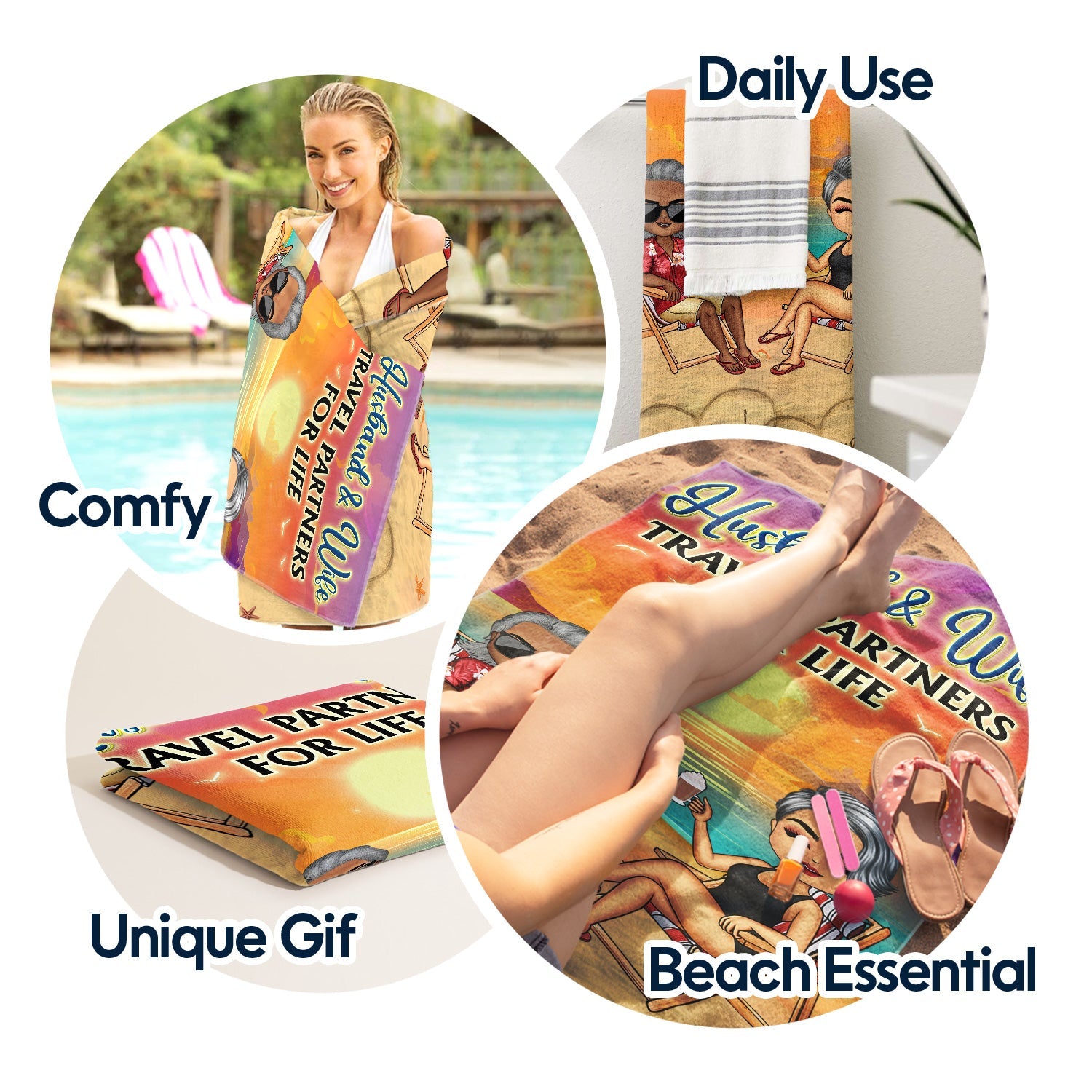 I Love You To The Beach And Back Chibi Traveling Beach Swimming Picnic Vacation - Birthday, Funny Gift For Her, Him, Couples, Family - Personalized Custom Beach Towel