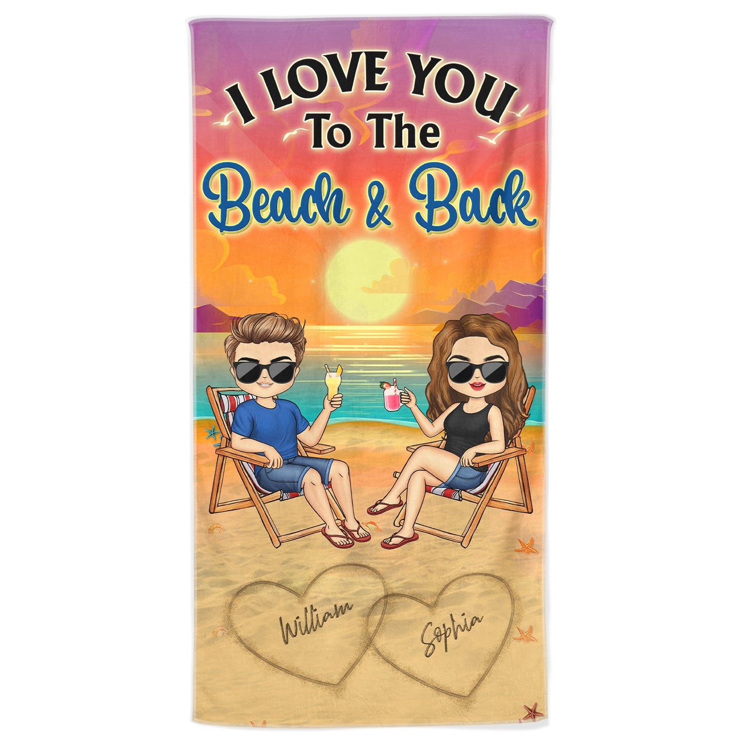 I Love You To The Beach And Back Chibi Traveling Beach Swimming Picnic Vacation - Birthday, Funny Gift For Her, Him, Couples, Family - Personalized Custom Beach Towel