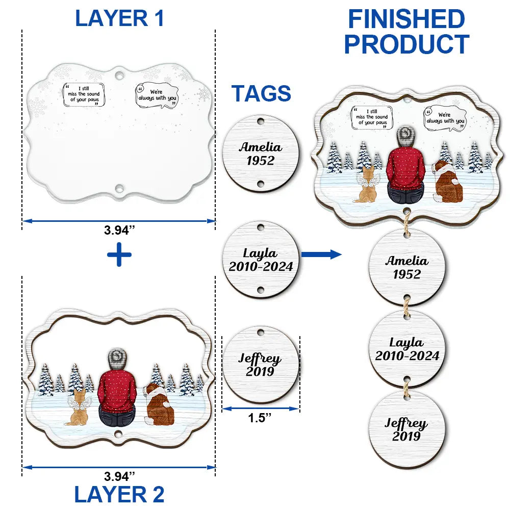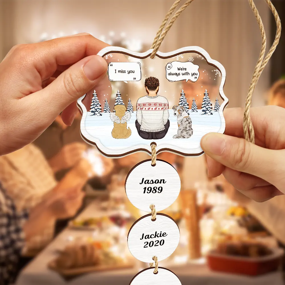 Honor the cherished memories of your beloved pet with our "I Miss You Pet Memorial A Girl And Her Dogs - Personalized Mix Ornament With Wooden Tag." Ideal for Cat Lovers, Dog Lovers, Cat Moms, Cat Dads, Dog Moms, and Dog Dads, this touching ornament serves as a heartfelt tribute to the special bond shared with a beloved pet. Perfect for Christmas, Thanksgiving, Mother's Day, Father's Day, Valentine's Day, birthdays, and anniversaries, it adds a sentimental touch to any celebration.