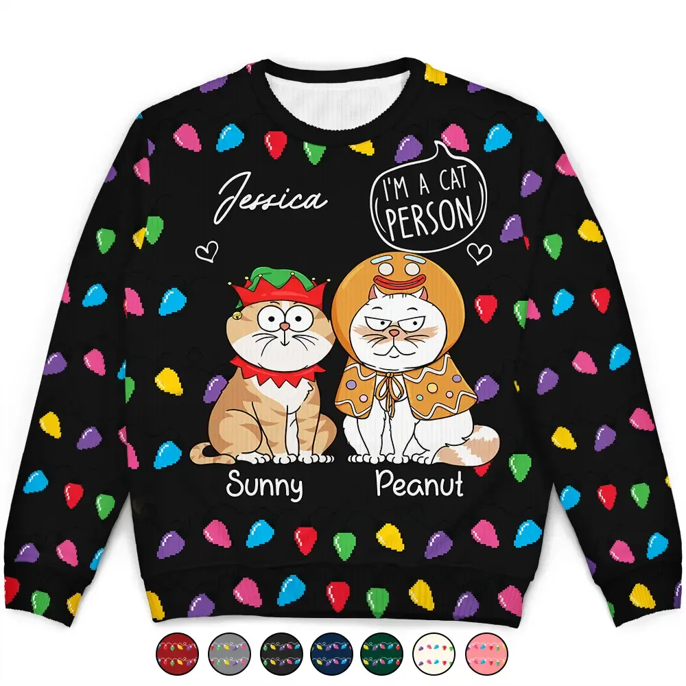 I'm A Cat Person Funny Christmas Cats - Personalized Unisex Ugly Sweater