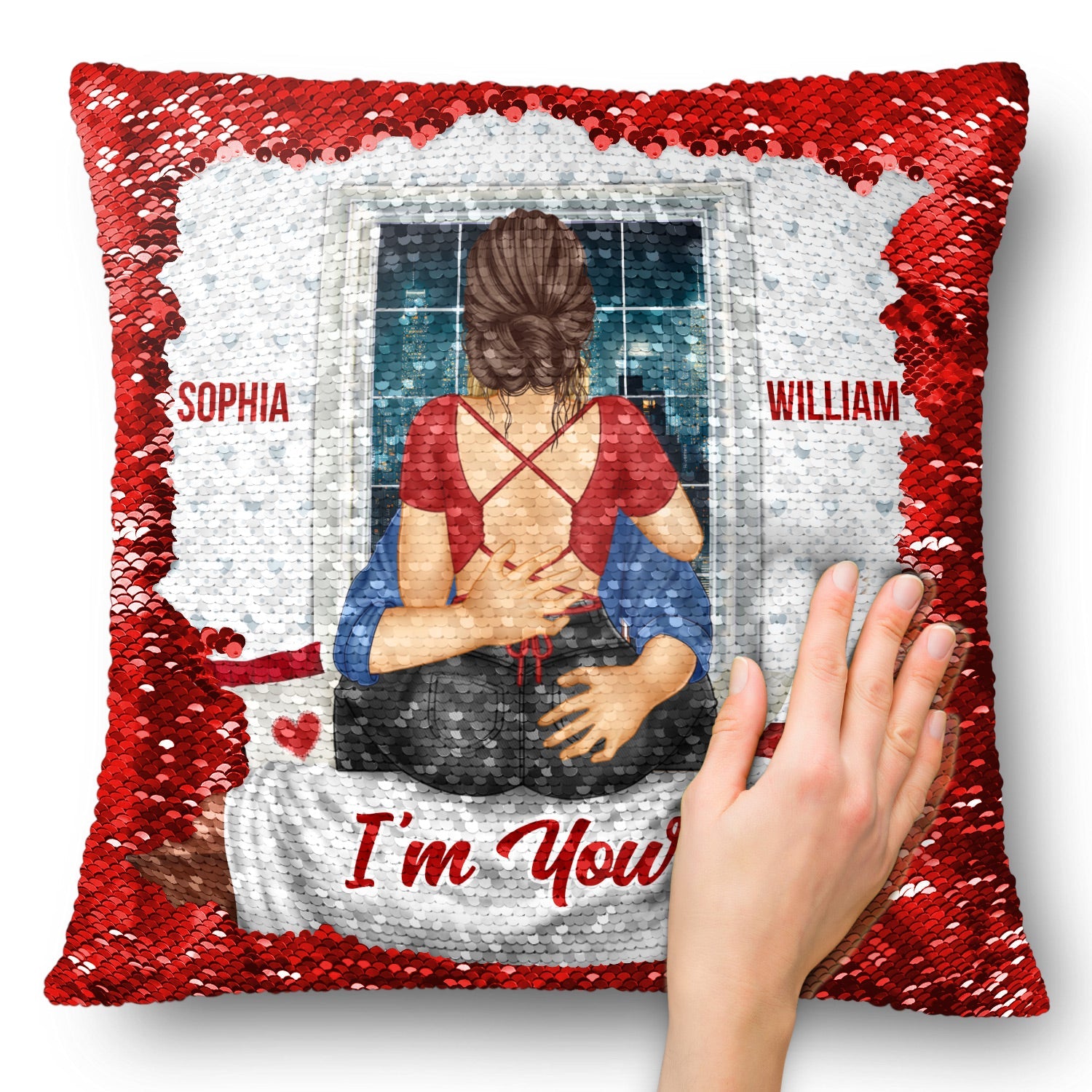 I'm Yours - Gift For Couples, Husband And Wife - Personalized Sequin Pillow, Mermaid Sequin Cushion Magic Reversible Throw Pillow