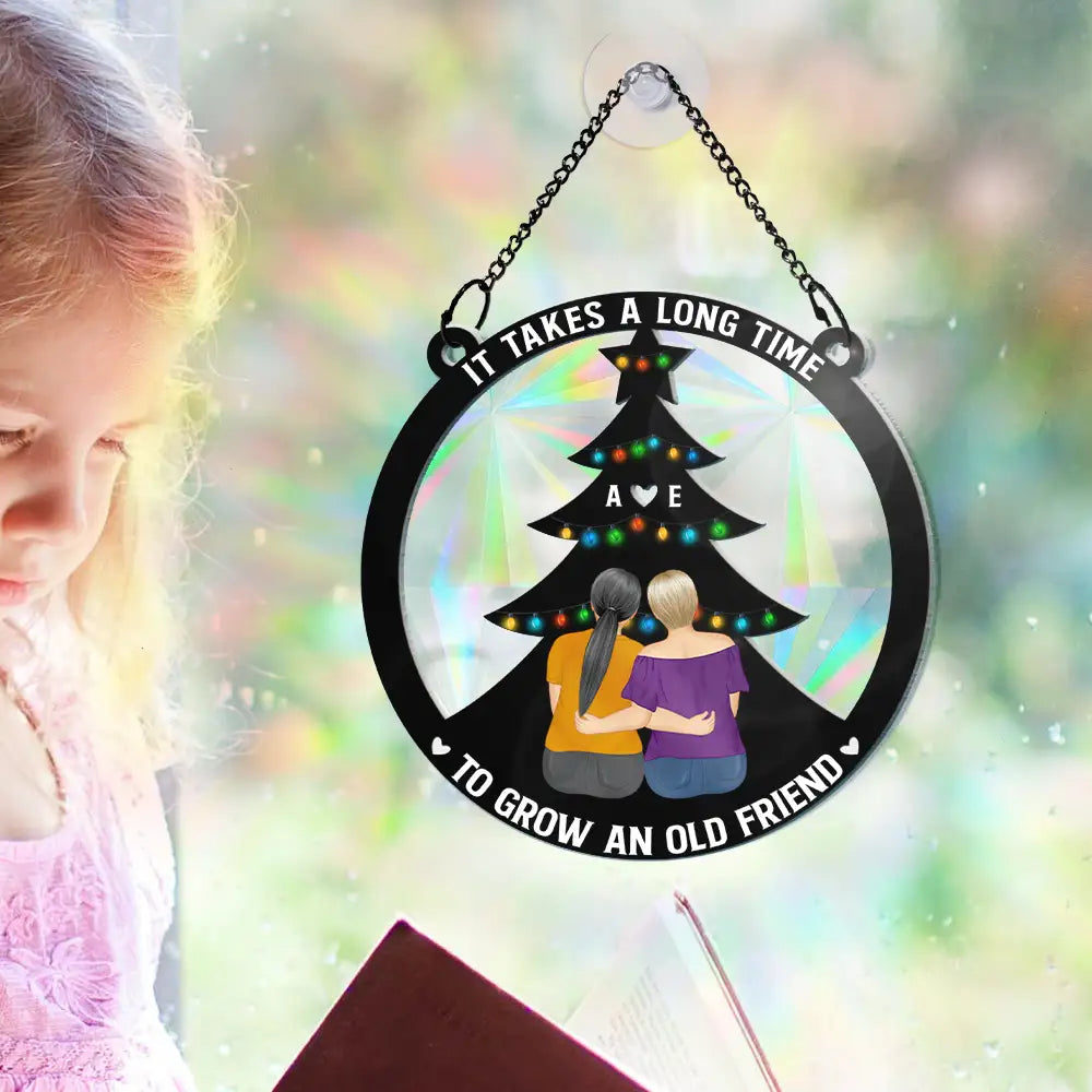 It Takes A Long Time Grow An Old Friend Bestie - Personalized Window Hanging Rainbow Suncatcher
