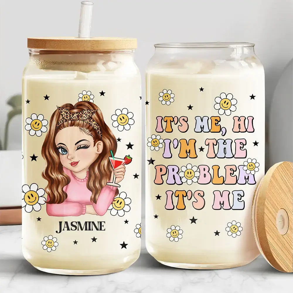 It's Me I'm The Problem - Personalized Clear Glass Can Glass Can The Next Custom Gift