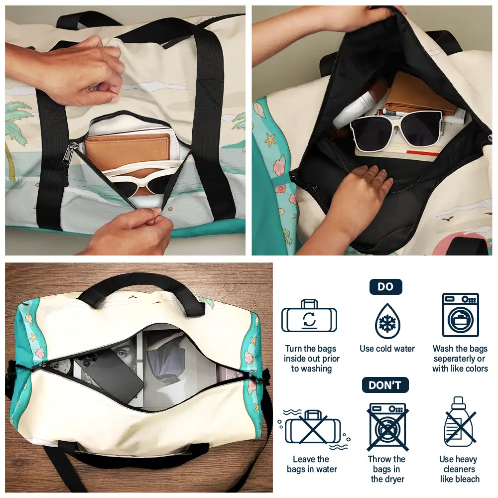 Perfect gift for beach trips, Thanksgiving, Christmas, birthdays, anniversaries, or summer vacations, this duffle bag provides ample space for all your essentials. Personalize it with your name to make it truly one-of-a-kind. The sturdy handles and adjustable strap ensure comfortable carrying, while the vibrant design radiates happiness and fun. Celebrate every journey with this delightful bag, and enjoy the beach life with joy and ease. Gift it on any occasion and make every summer travel experience unforgettable!