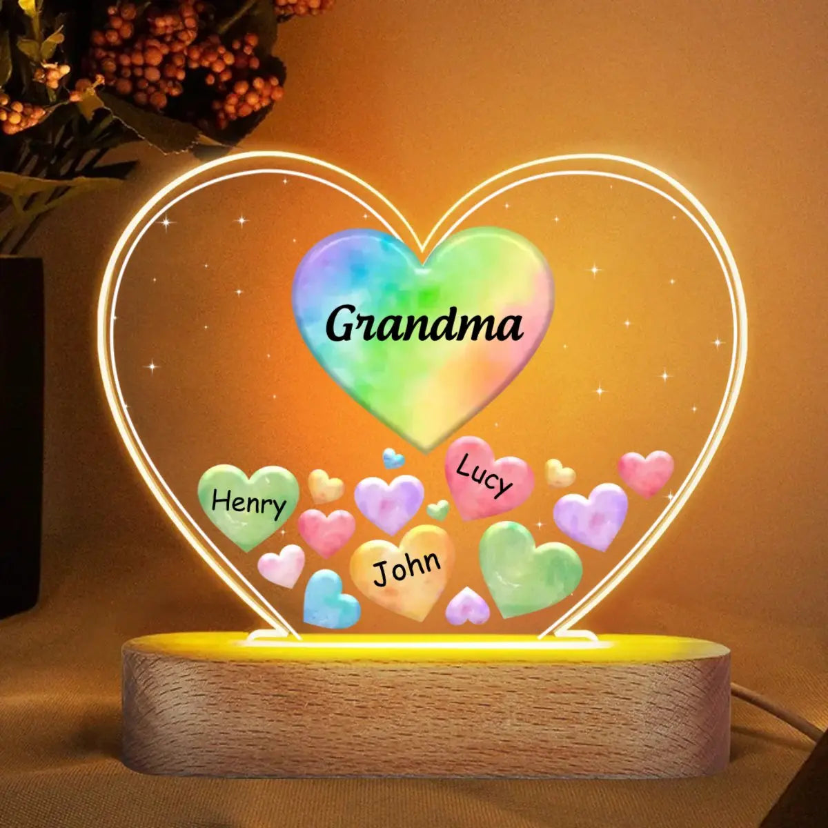 Family - Grandma Mom Hearts In Heart - Personalized Shaped 3D LED Light Acrylic  The Next Custom Gift