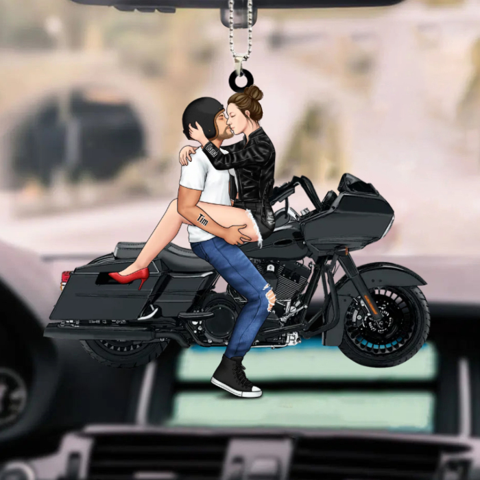 Kissing Couple - Personalized Car Acrylic Ornament - For Him, For Her, Motorcycle Lovers