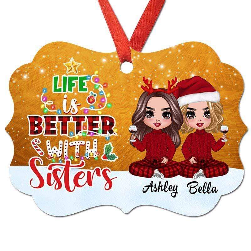 Life Is Better With Sisters Doll Girls Personalized Christmas Ornament