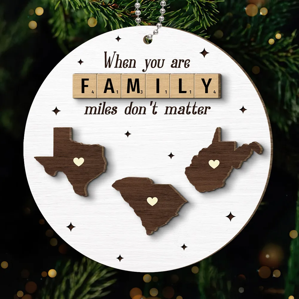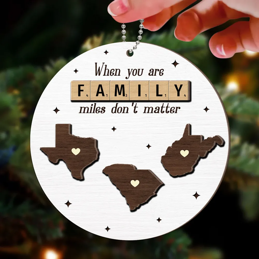 Long Distance Relationship Family Couple Siblings Besties State Map Personalized Wooden Ornament