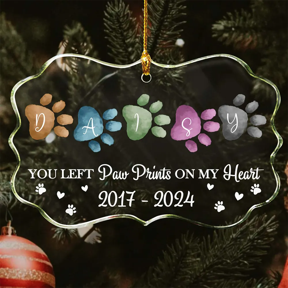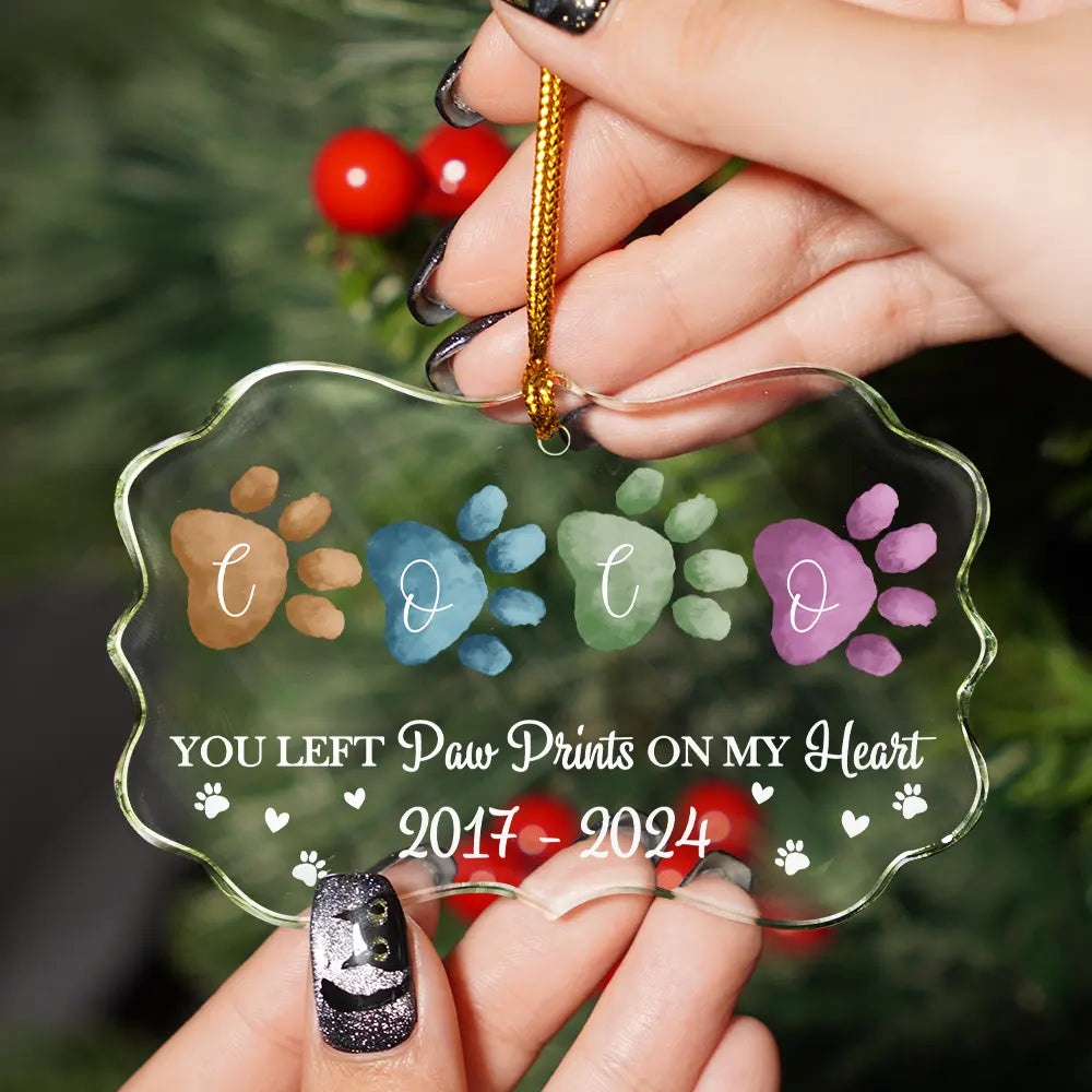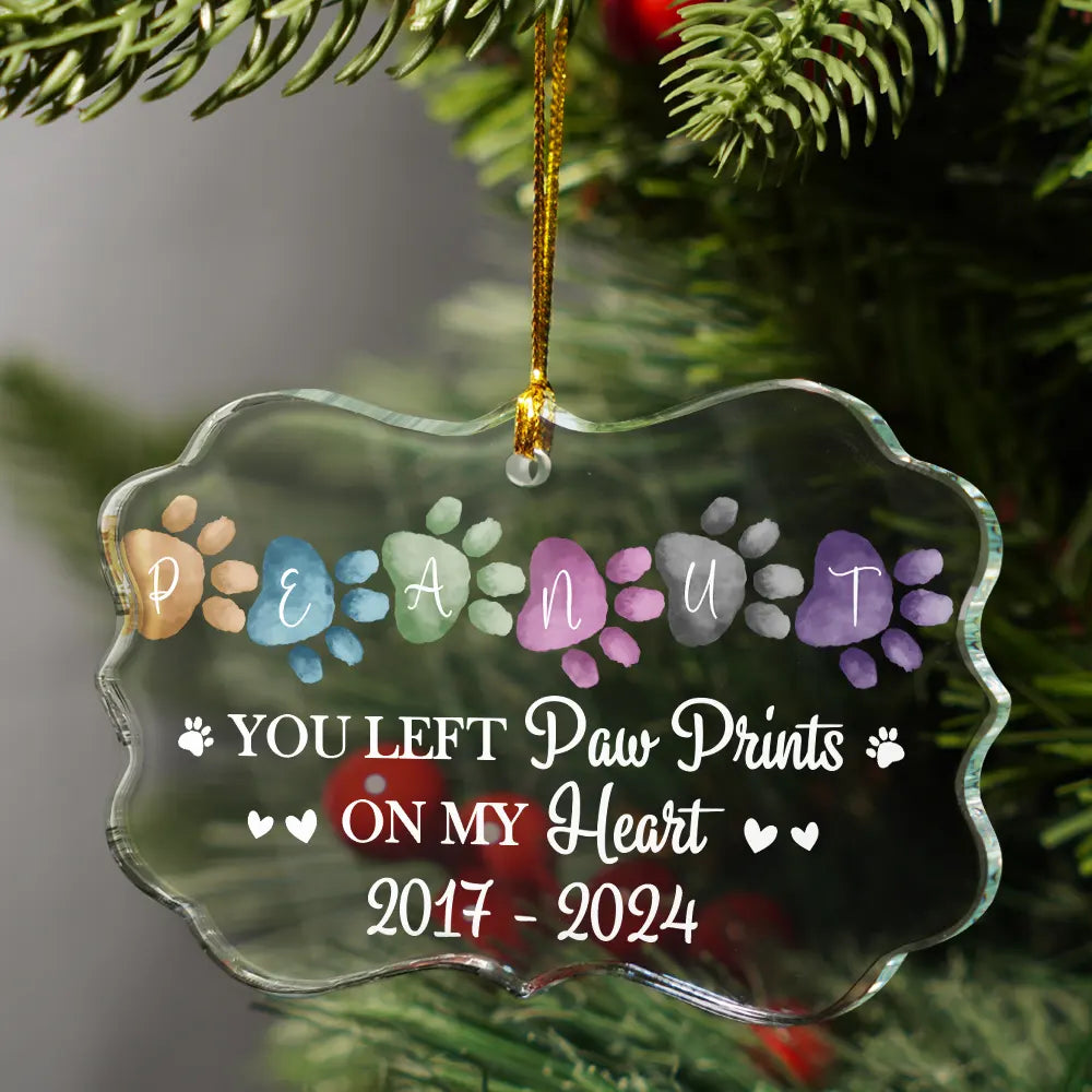 Memorial Dog Cat You Left Paw Prints On My Heart - Personalized Medallion Acrylic Ornament