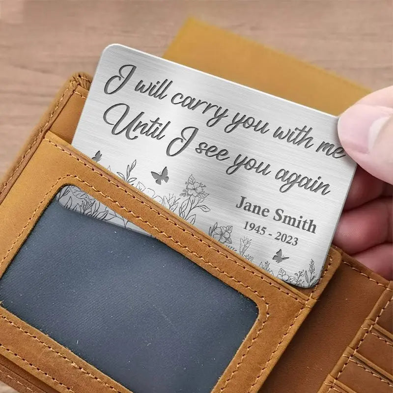 Memorial - I Will Carry You With Me Until I See You Again - Personalized Photo Aluminum Wallet Card Ver 2 (LH) Card The Next Custom Gift