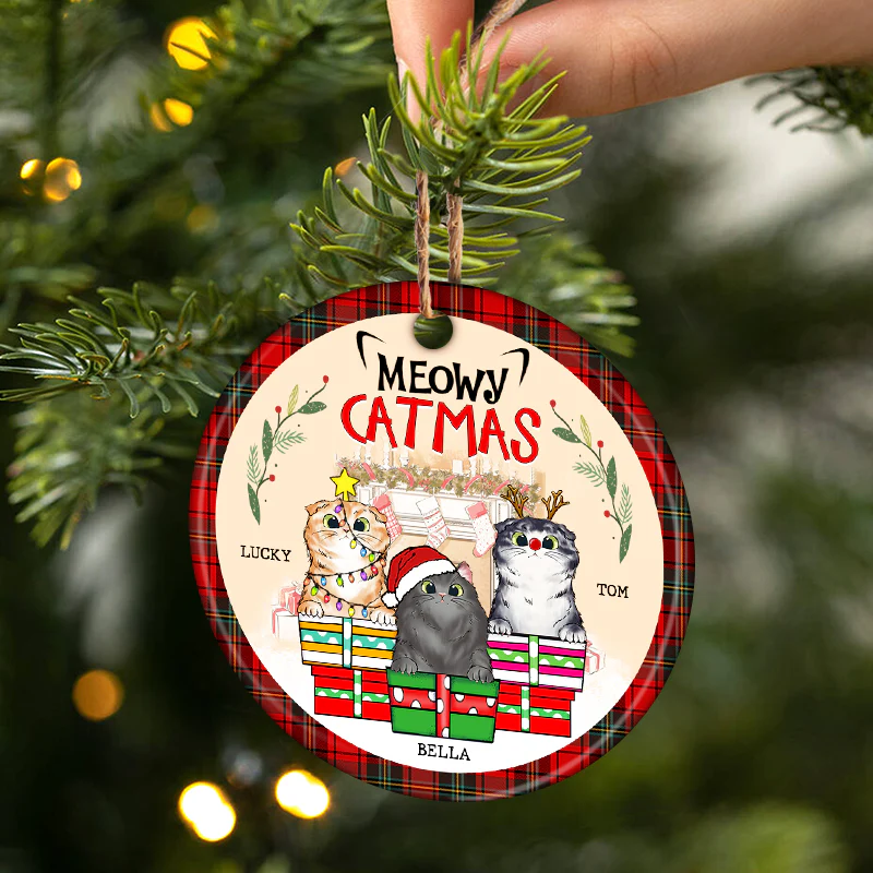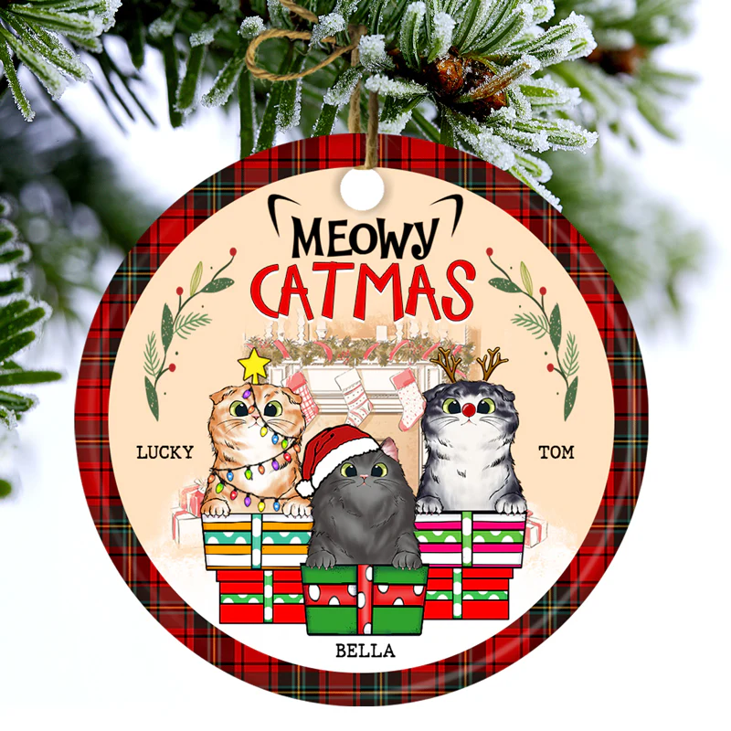 Meowy Catmas - Christmas Gift For Cat Lovers - Personalized Custom Circle Acrylic Ornament