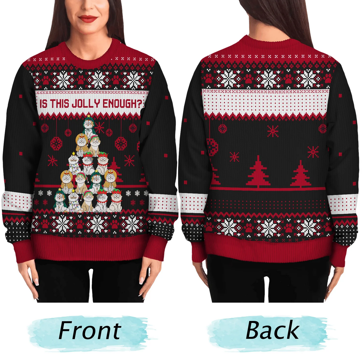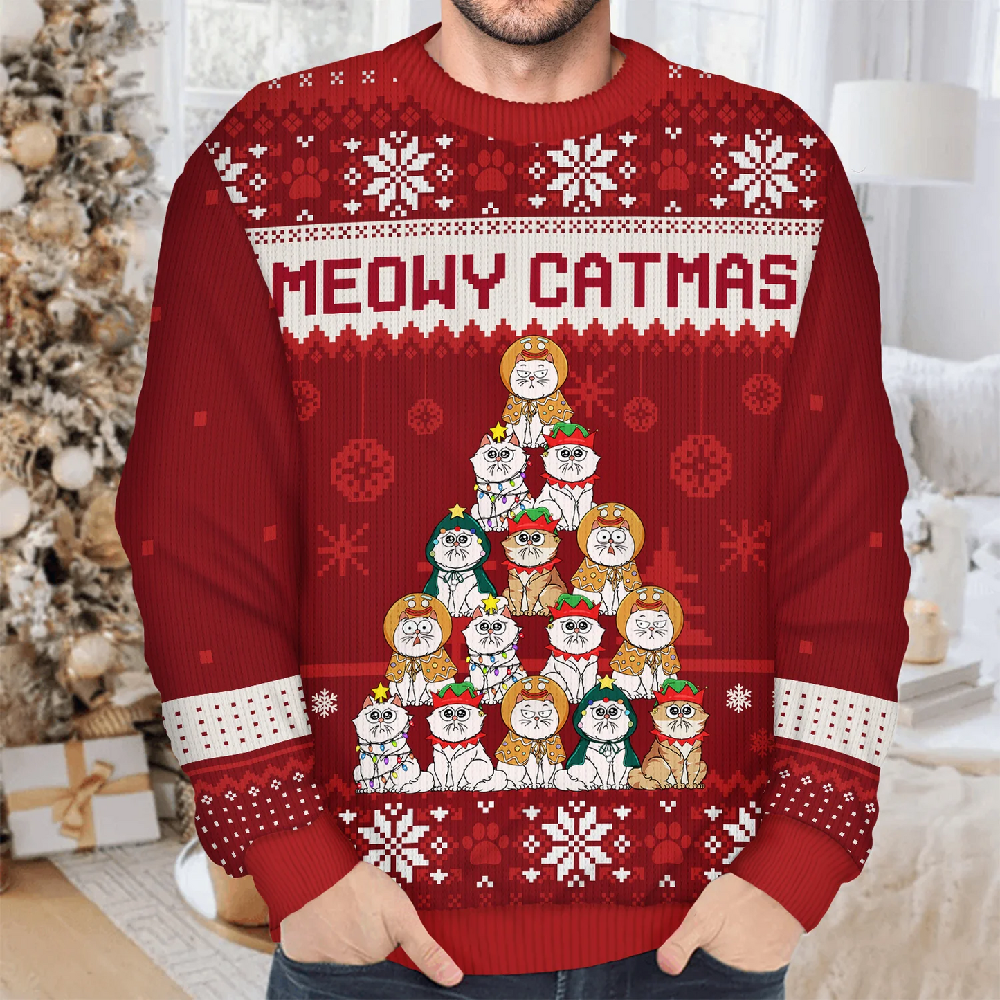 Meowy Catmas Christmas Tree Cartoon Style - Gift For Cat Lovers - Personalized Unisex Ugly Sweater