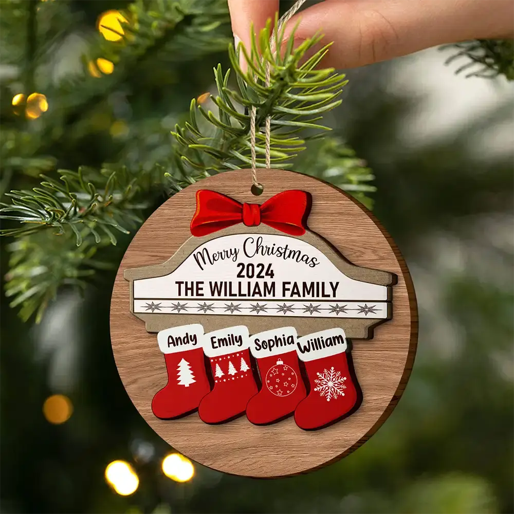 Merry Christmas Stocking Family - Christmas Gift For Family - Personalized 2-Layered Wooden Ornament ornament The Next Custom Gift