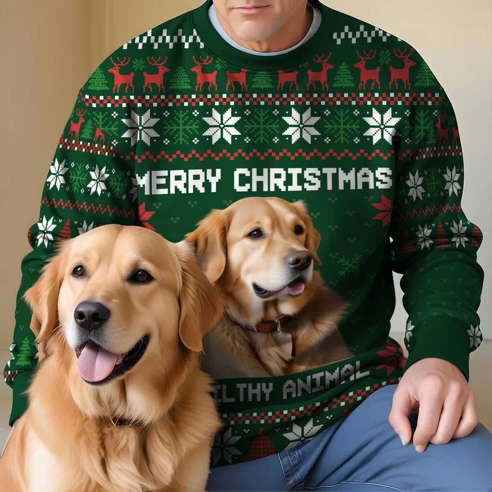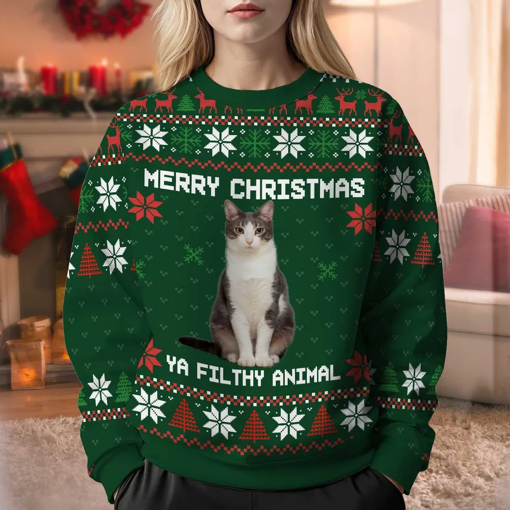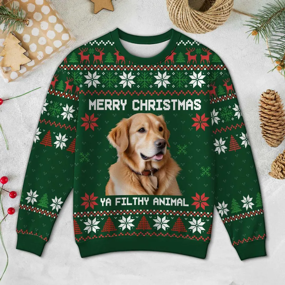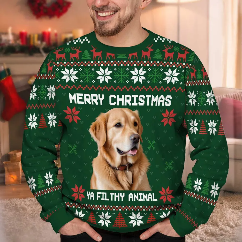 Merry Christmas Ya Filthy Animal Photo Inserted Personalized Faux Knit Ugly Sweater
