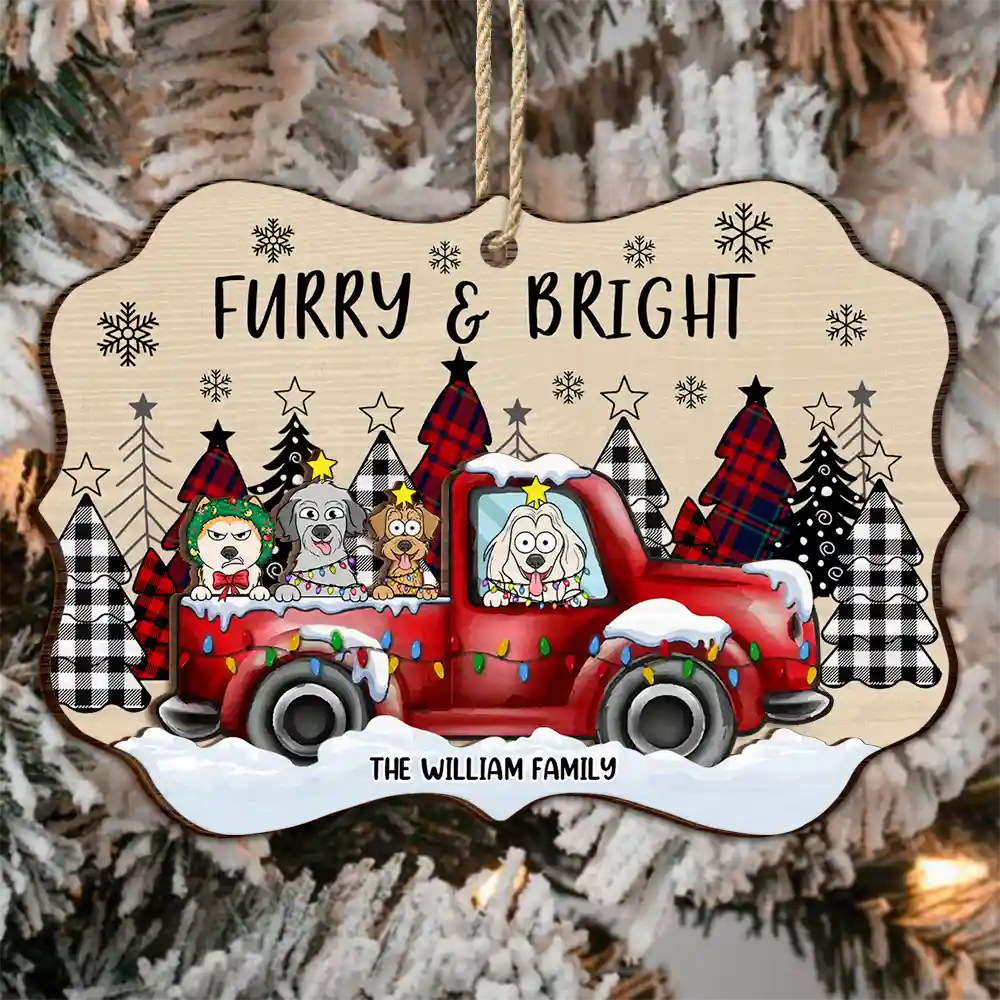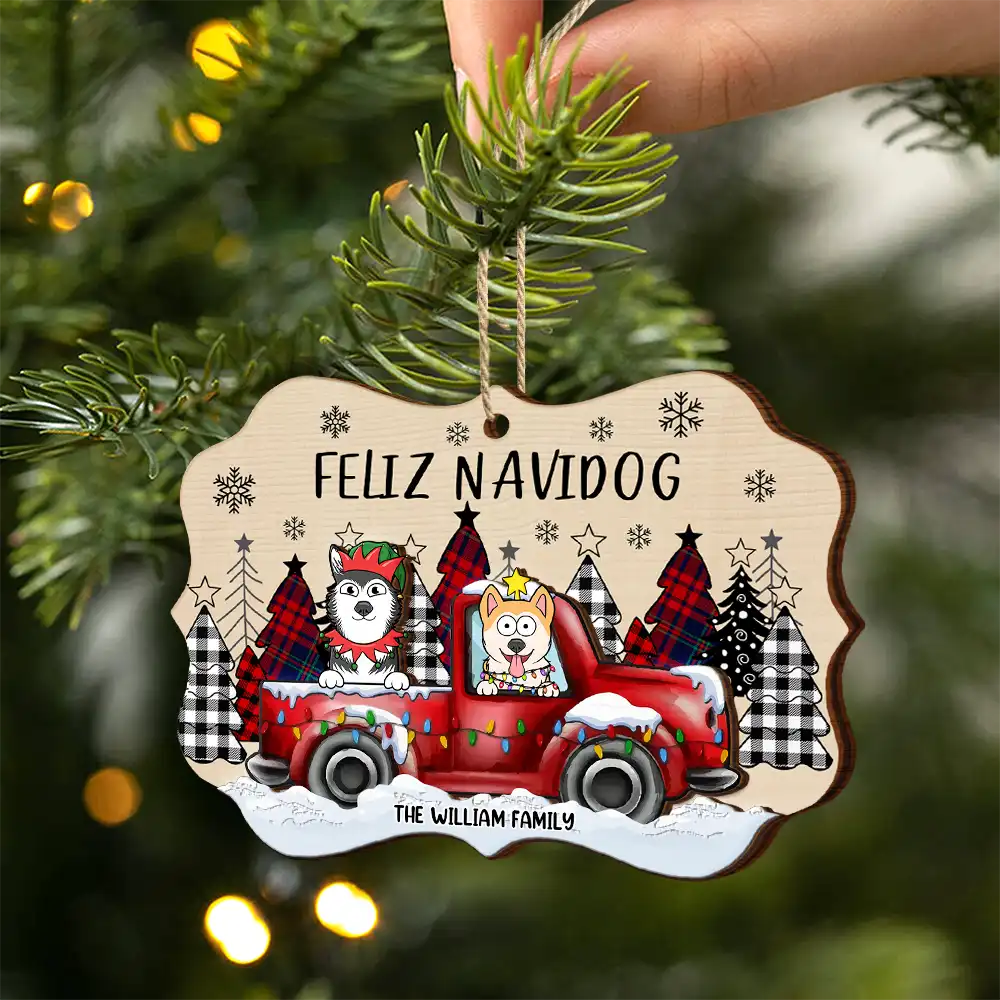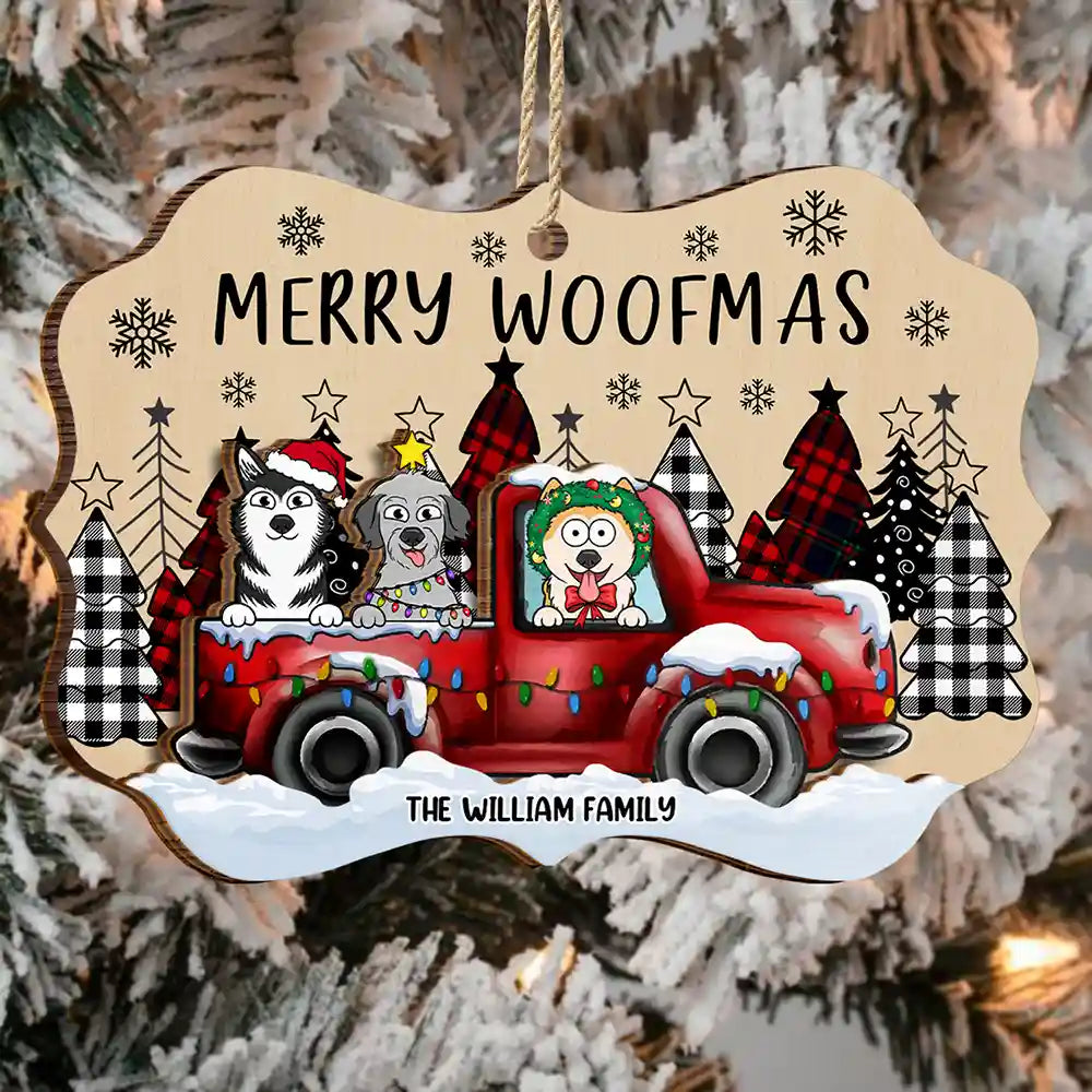 Merry Woofmas Dog Lovers Red Truck - Personalized Wooden Ornament