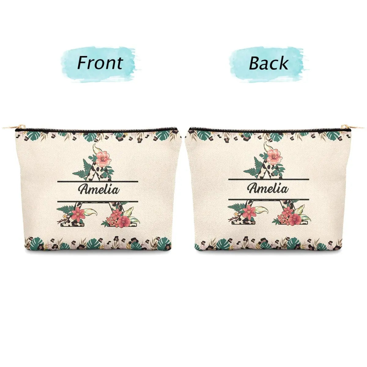 Monogram Letter Leopard Pattern - Gift For Women, Yourself - Personalized Cosmetic Bag