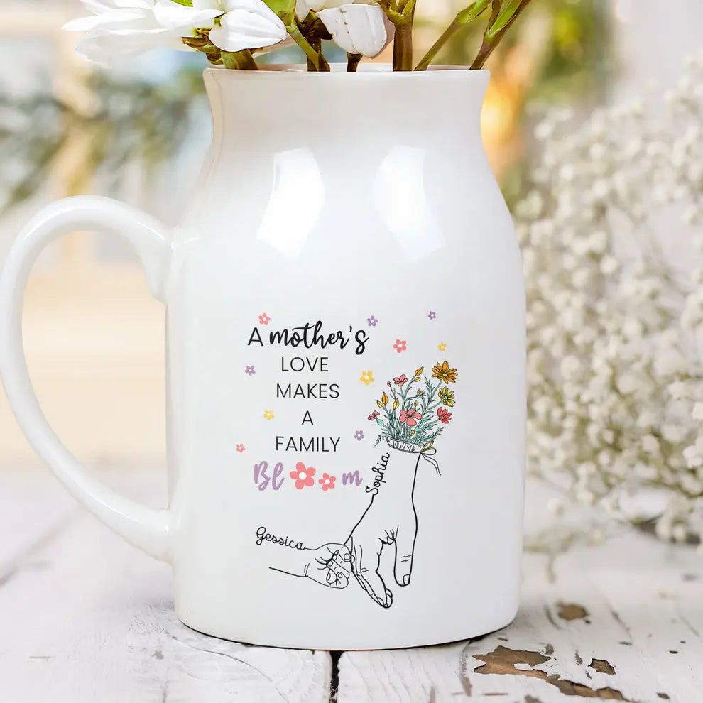Mother - A Mother's Love Makes A Family Bloom - Personalized Ceramic Flower Vase