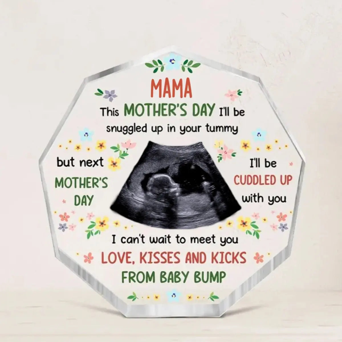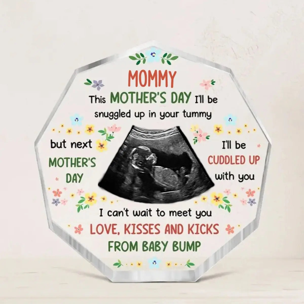 This Personalized Photo Acrylic Plaque is the perfect gift for that special first Mother's Day with your little one. The plaque comes with a variety of different colors and fonts, so you can make it as unique as you want!