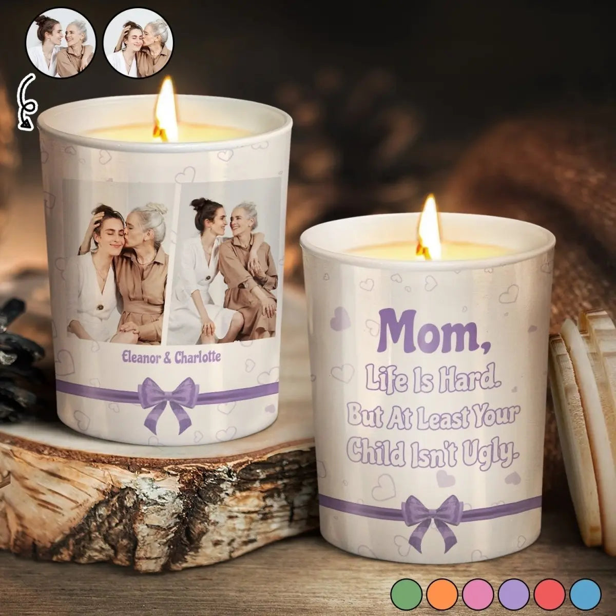 Mother's Day - Custom Photo Mom Life Is Hard - Personalized Scented Candle With Wooden Lid