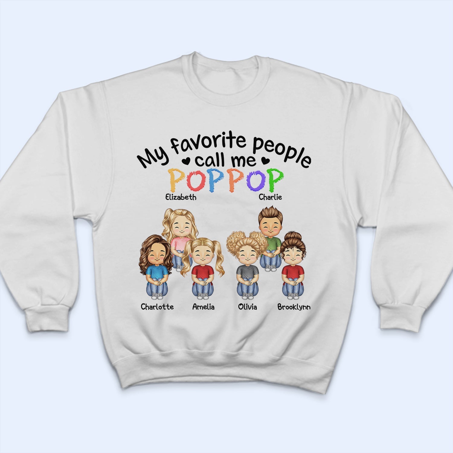 PREVIEW: Custom title, choose number of children, choose skin color, hairstyle, clothes and drink for dad/mom, choose skin color, hairstyle, shirt color and drink for each child, then enter the names and click [Preview] to see preview ❤️. Please double check your options before purchasing.