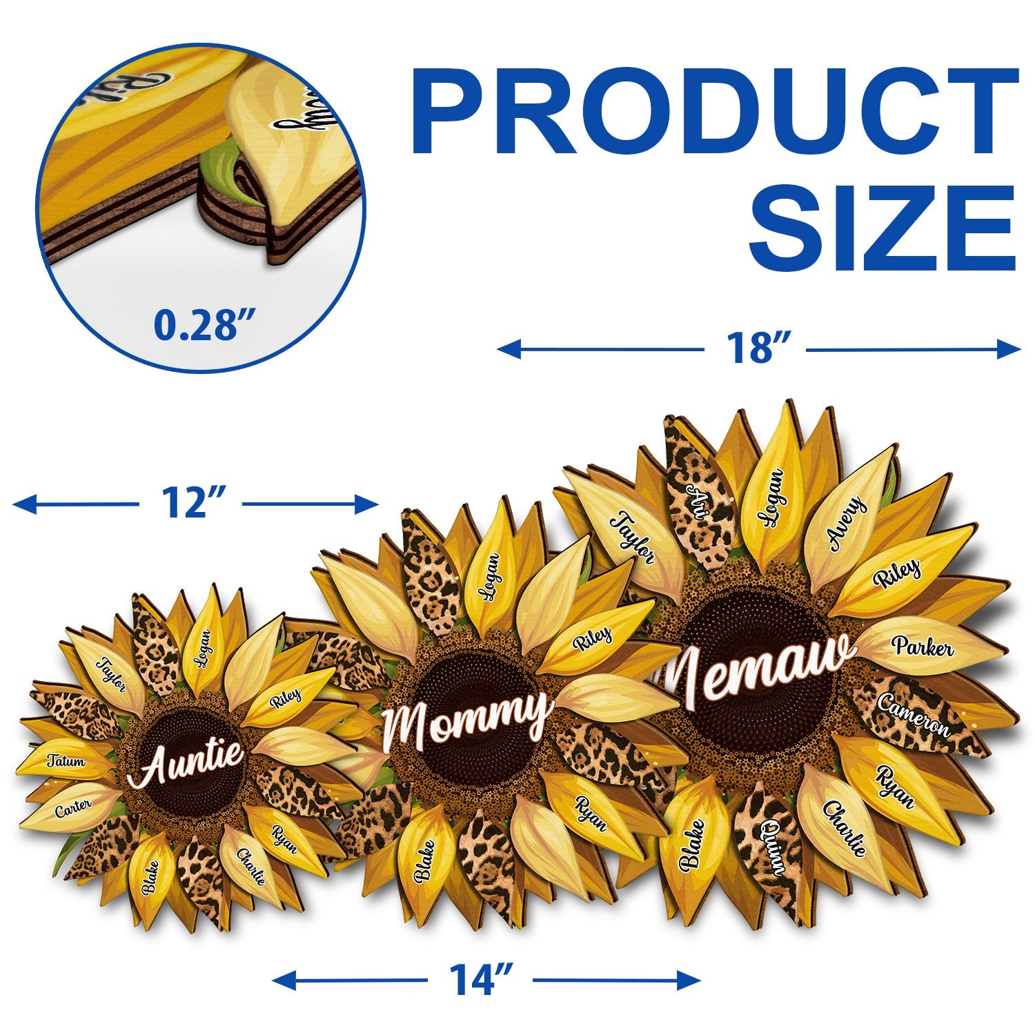 Nana, Mom, Auntie Family Sunflower - Birthday, Loving Gift For Mother, Grandma, Grandmother - Personalized Custom Shaped Wood Sign