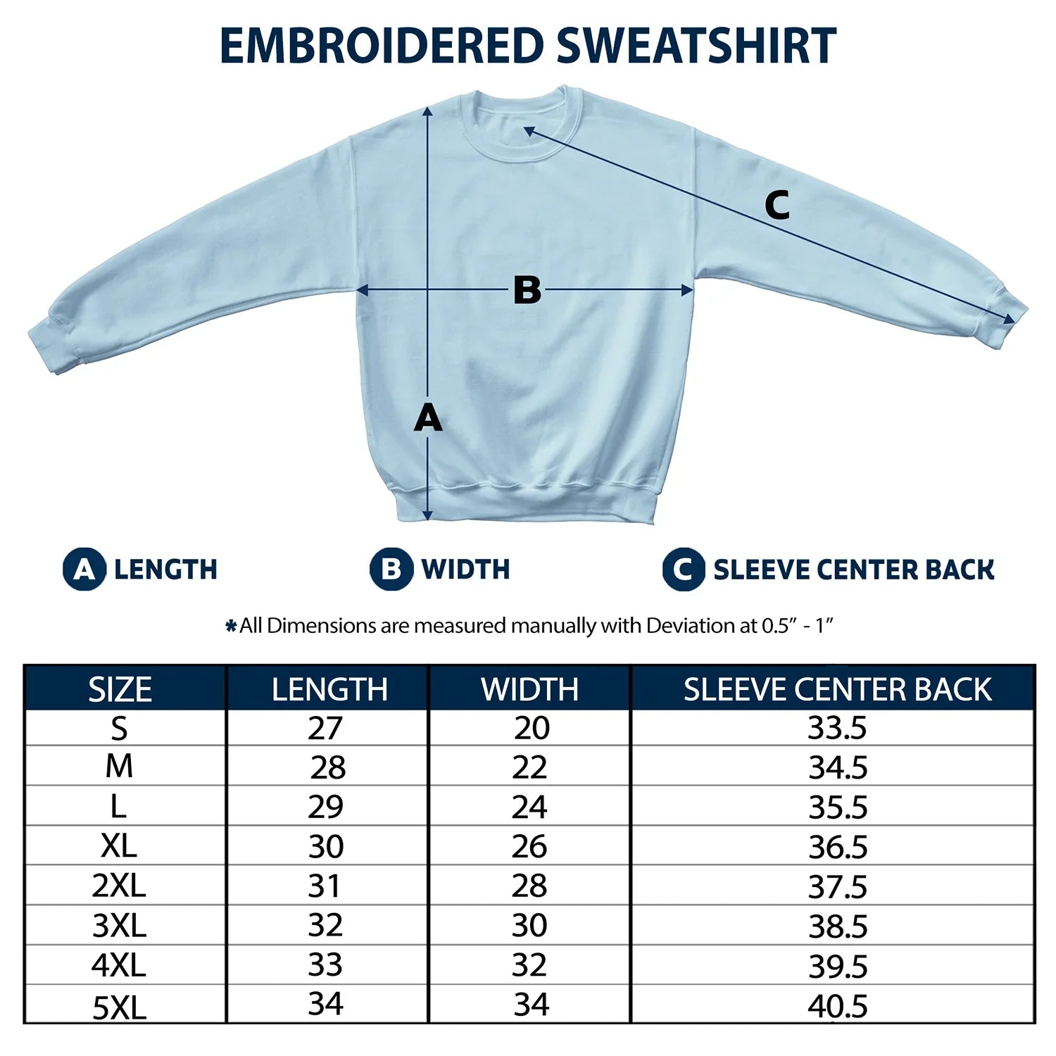 Please allow 0.5-1 inch differences due to manual measurement.