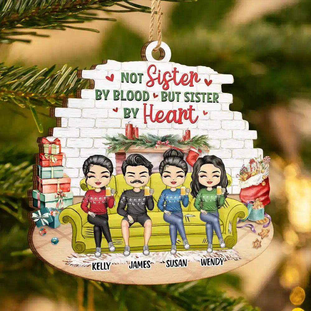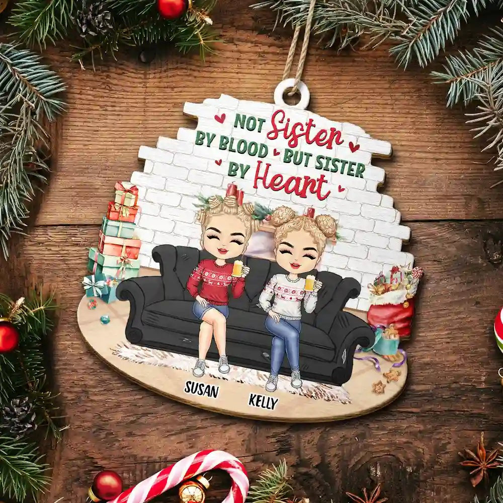 Not Sisters By Blood But Sisters By Heart Besties - Personalized Custom Shaped Wooden Ornament