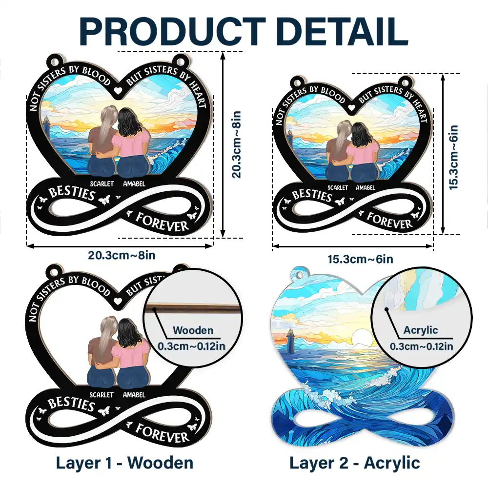 Honor the memory of cherished relationships with our “Not Sisters By Blood But Sisters By Heart” Personalized Window Hanging Suncatcher Ornament. This heartfelt keepsake is a meaningful gift for besties, sisters, and siblings, ideal for Thanksgiving, Christmas, birthdays, or anniversaries.