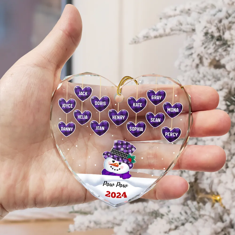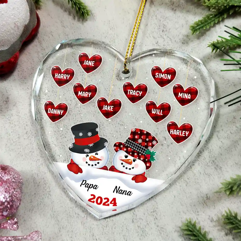 Papa Nana Snowman Christmas Grandparents - Personalized Heart Shaped Acrylic Ornament