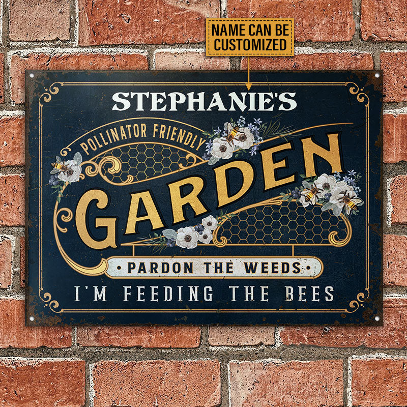 Personalized Bee Garden Pollinator Friendly Navy Customized Classic Metal Signs