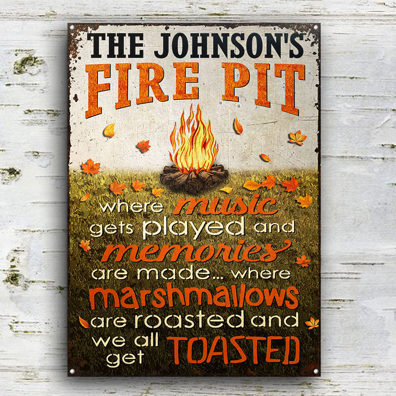 Personalized Camping Fire Pit Get Toasted Grass Custom Classic Metal Signs