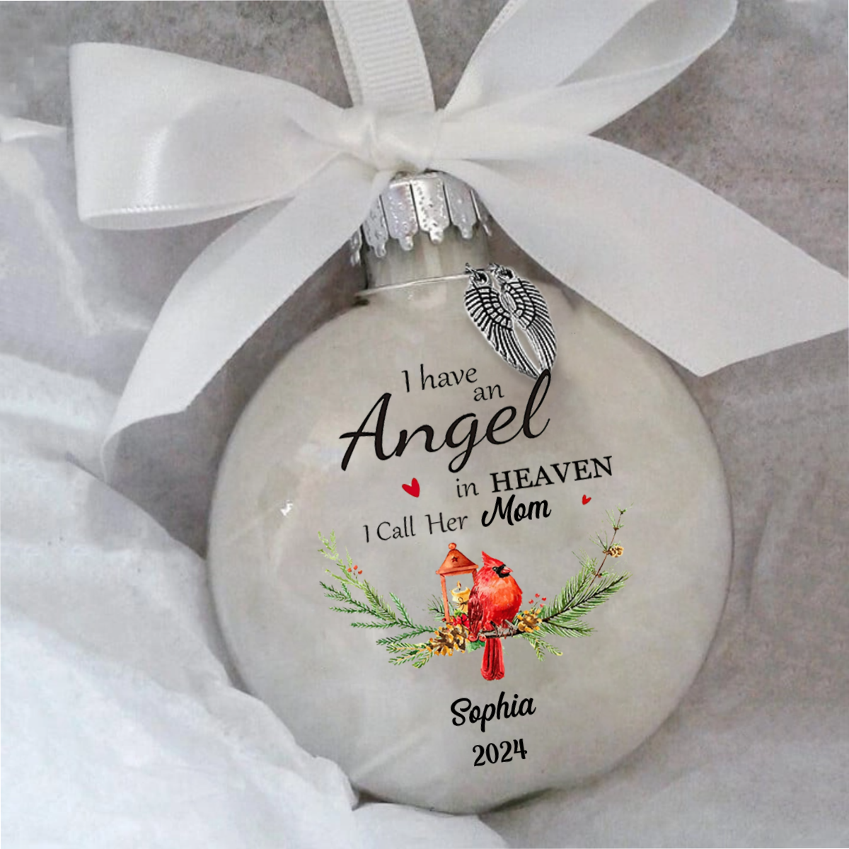 PERSONALIZED COMMEMORATE ORNAMENTS FEATHER BALL - ANGEL IN HEAVEN MEMORIAL ORNAMENT