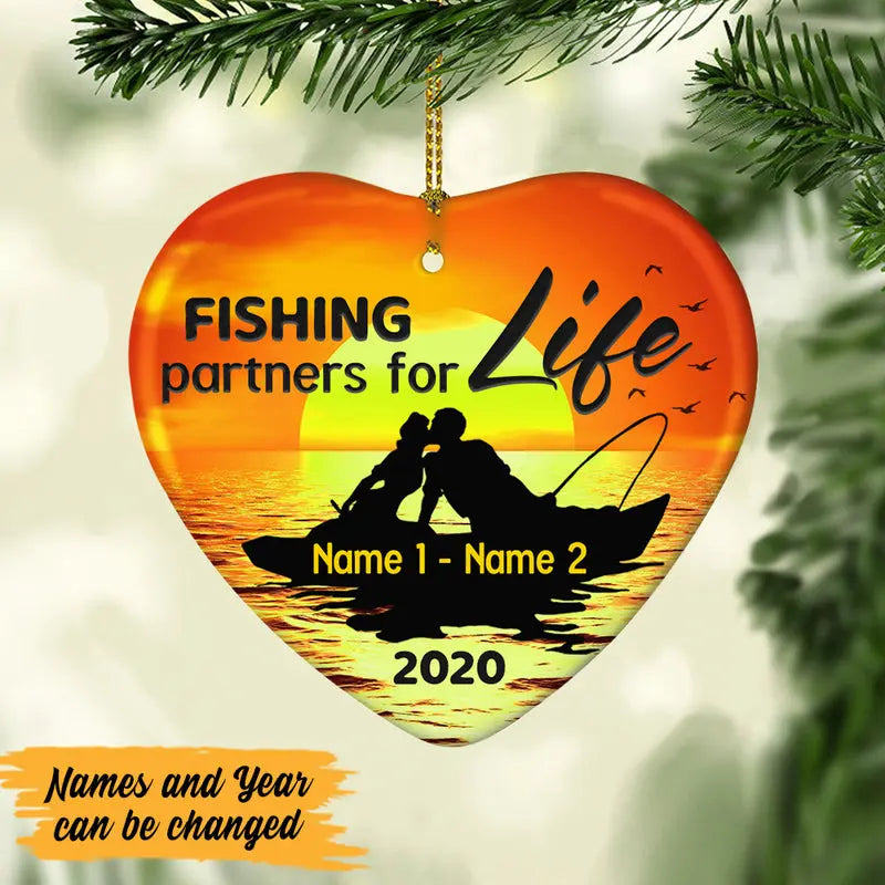 Personalized Fishing Husband & Wife Heart Ornament Ornament The Next Custom Gift