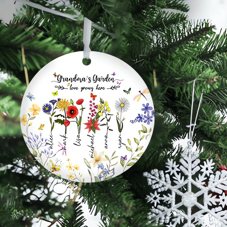 Personalized Grandma's Garden Love Grows Here Ornament, Custom Birth Month Flower Family Ornament, Christmas Gift for Grandma Mom