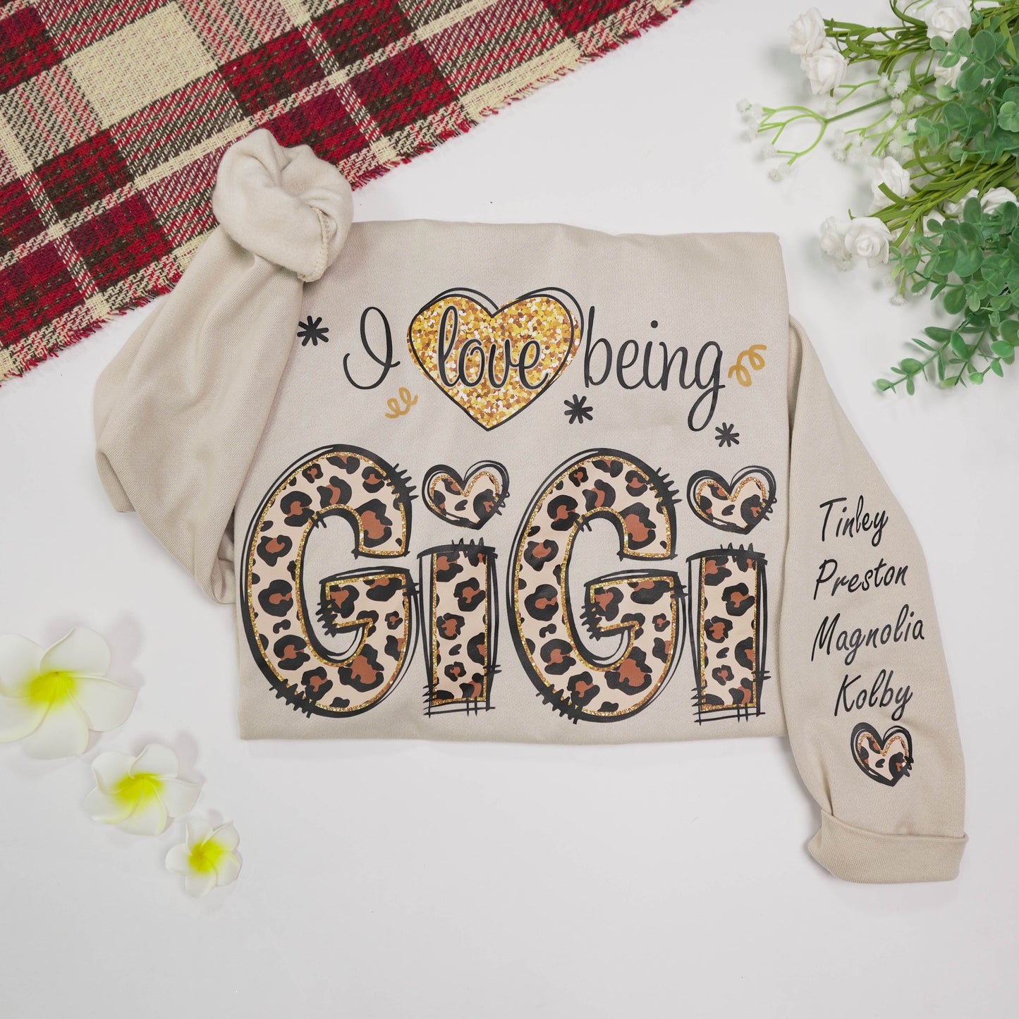 Personalized I Love Being Gigi Leopard Sweatshirt, Custom Grandma and Grandkids Sweatshirt