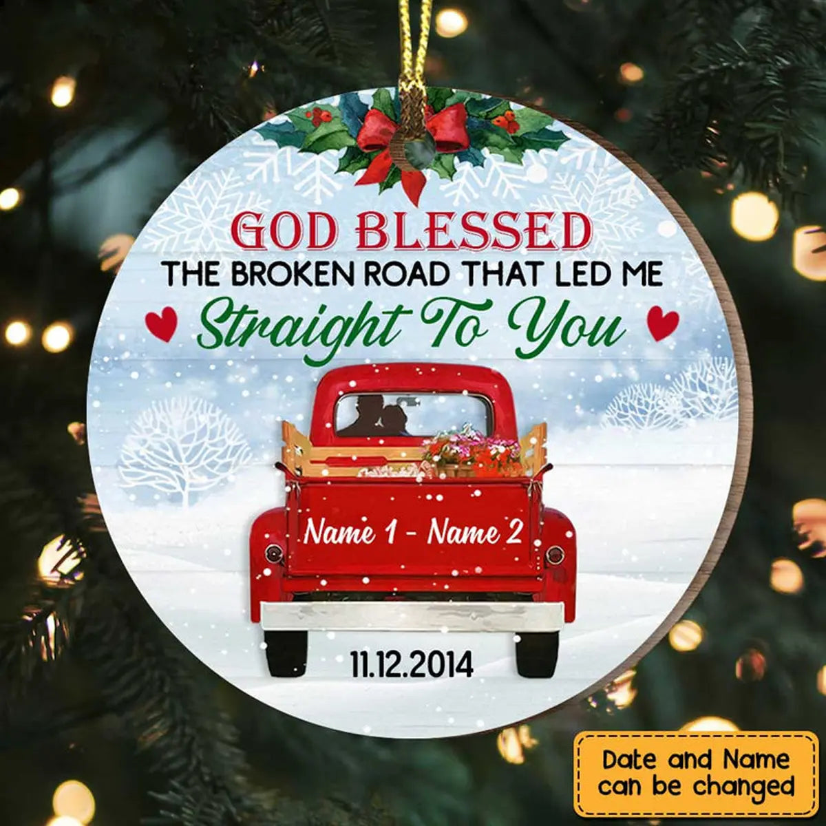 Personalized Love Couple Red Truck Christmas Circle Ornament ornament The Next Custom Gift