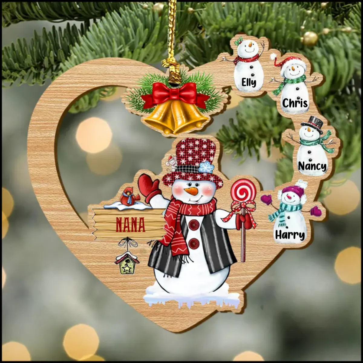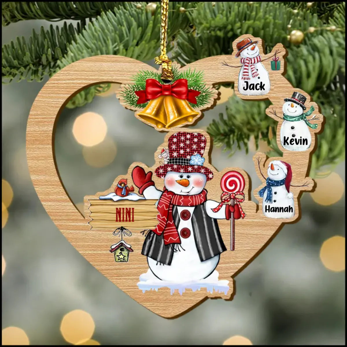 Personalized Nickname Nana With Snowman Kids Heart-Shaped Ornament ornament The Next Custom Gift