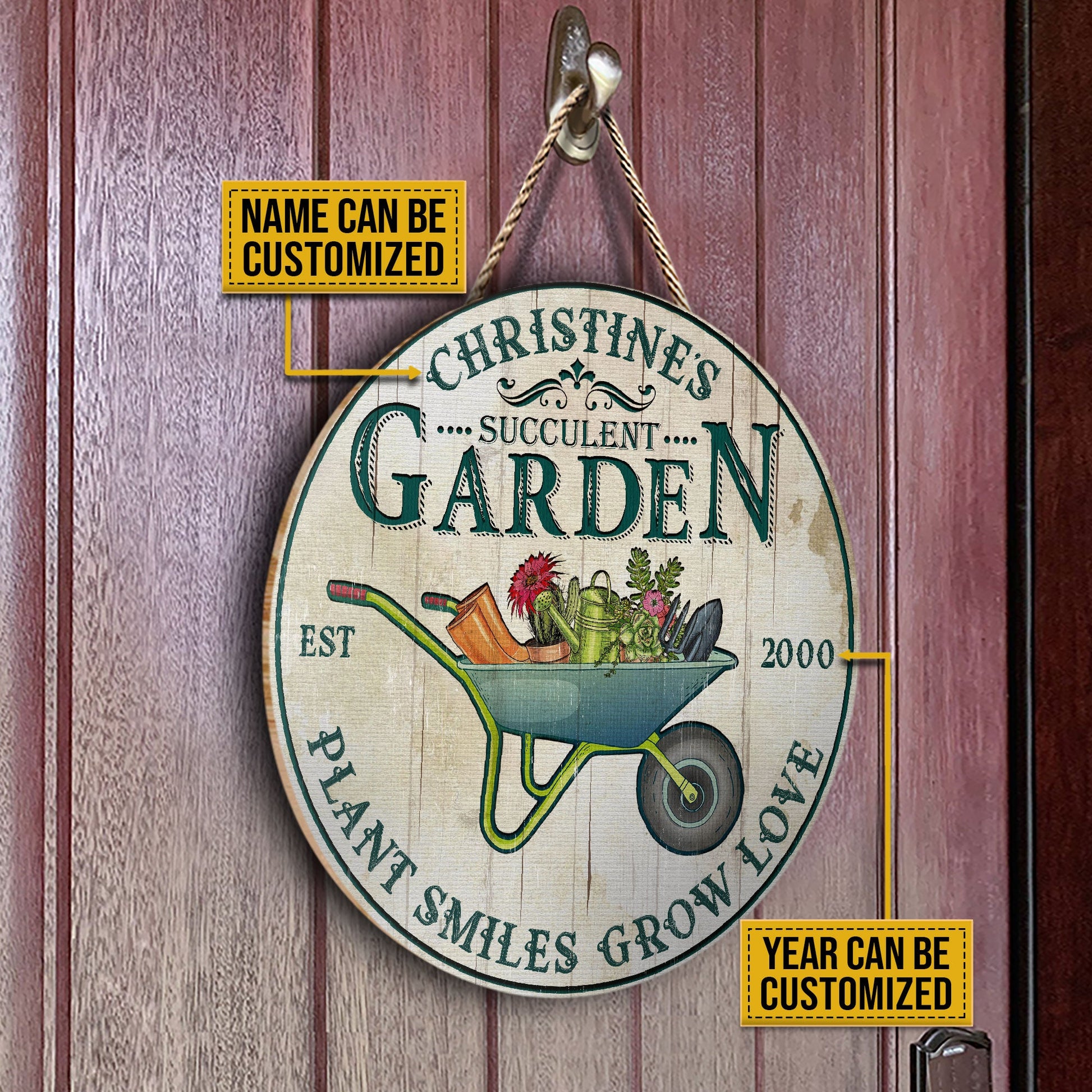 Personalized Succulent Plant Smiles Grow Customized Wood Circle Sign
