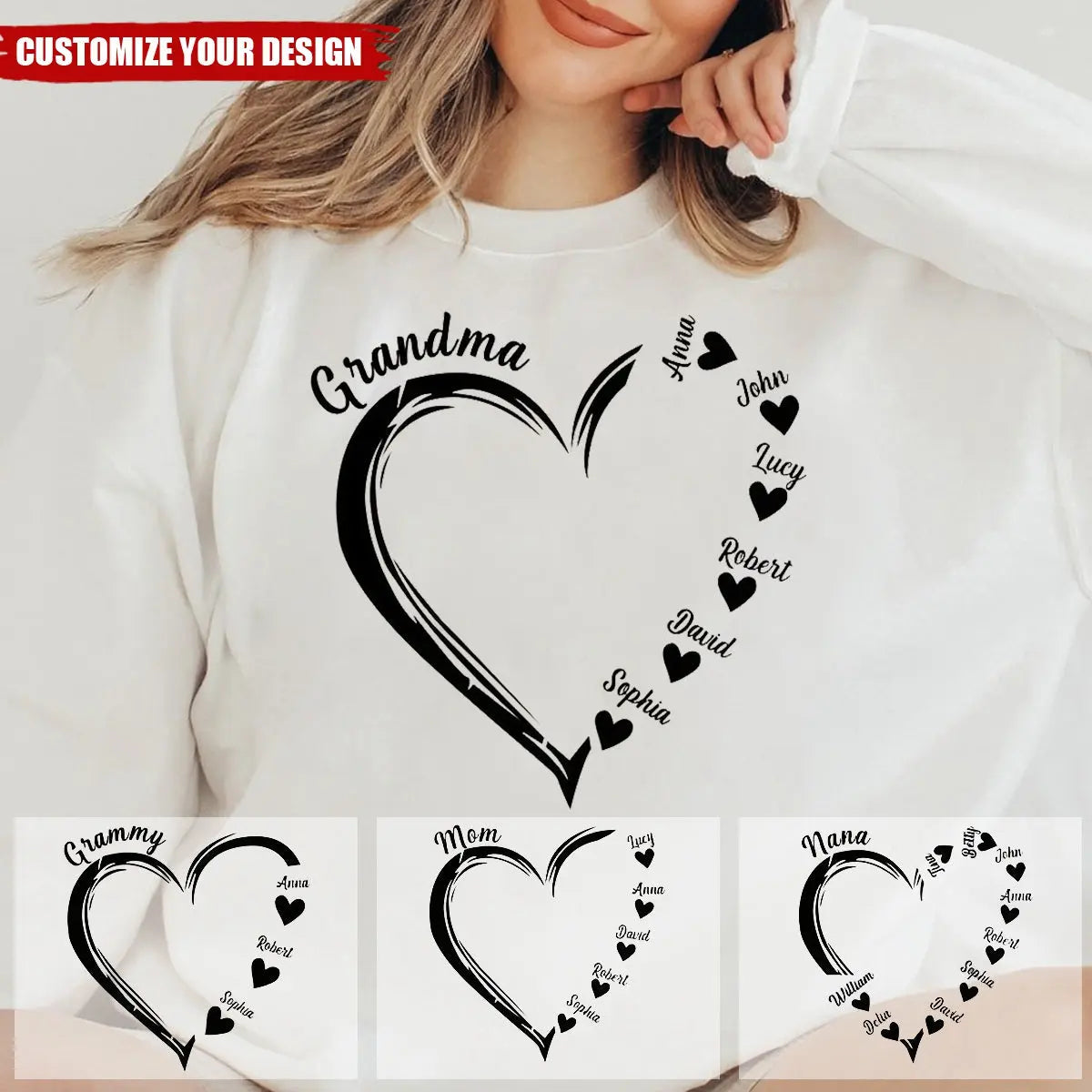 Personalized Sweet Heart Grandma, Nana, Mom Kids Sweatshirt