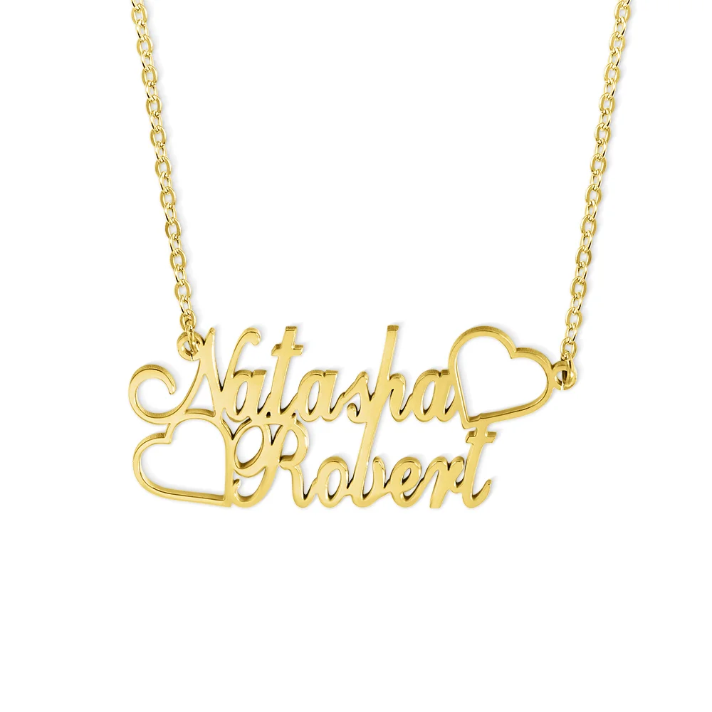 Personalized Two Name Necklace with Two Love Hearts Mother's Day Birthday Valentine's Day Gift for Women Girls