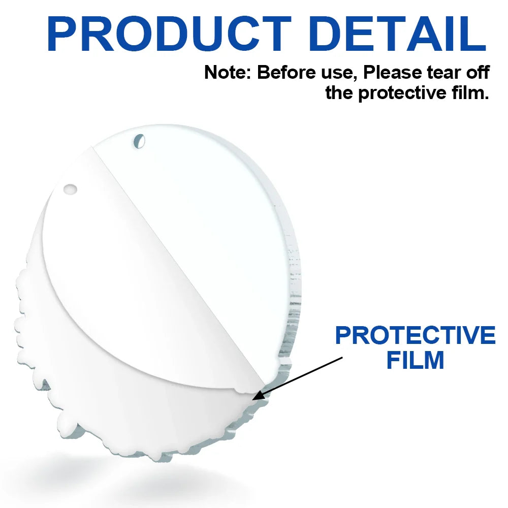 - Our acrylic ornament is covered with a protective film to prevent scratches and dust. Simply, remove the film and your product will be ready to display.
