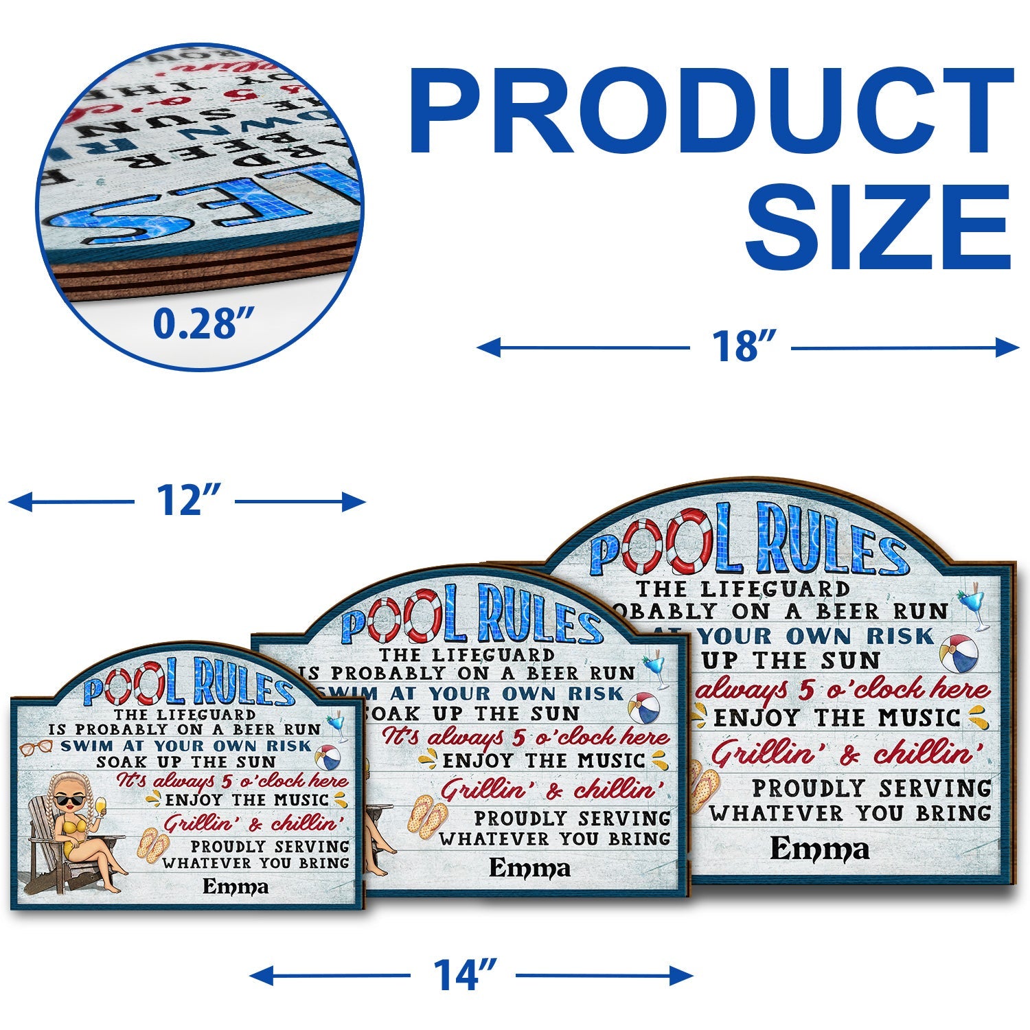 Pool Rules Swim At Your Own Risk Grilling Chibi - Home Decor, Backyard Decor, Gift For Her, Him, Family, Couples, Husband, Wife - Personalized Custom Shaped Wood Sign