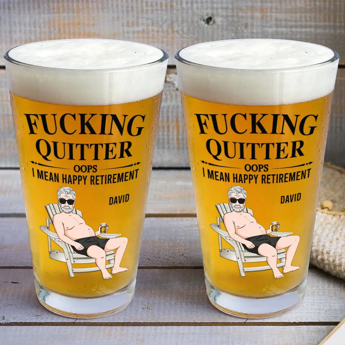 Quitter Oops I Mean Happy Retirement - Personalized Beer Glass