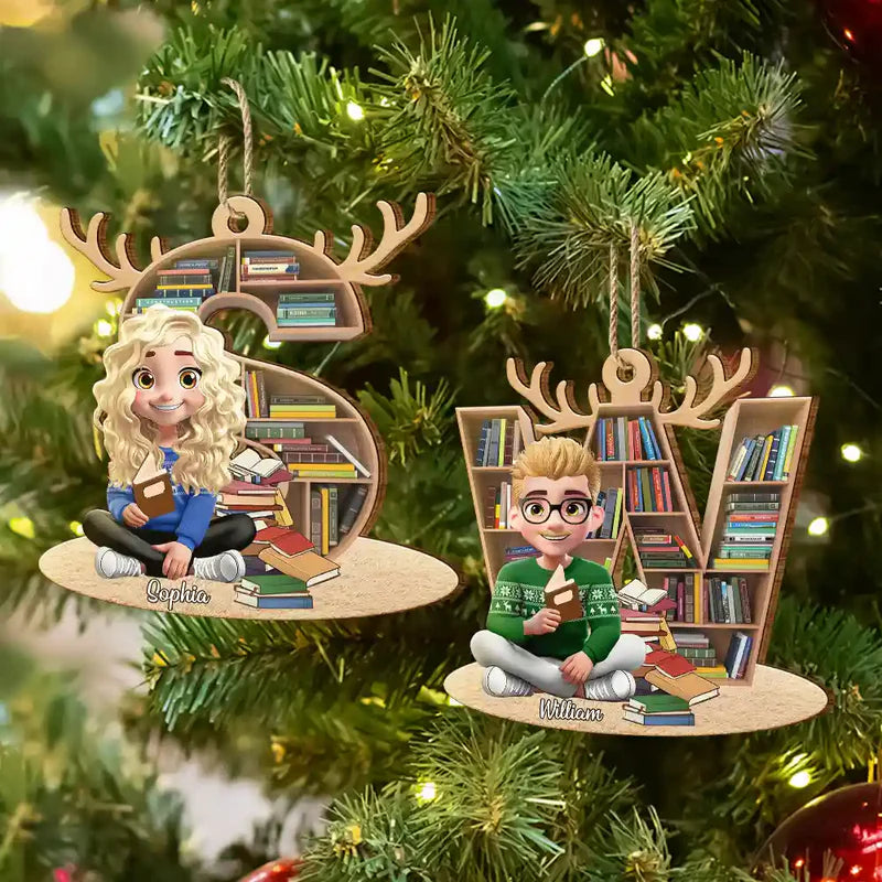 Reading Girl Monogram Bookish Keepsake - Personalized Circle Acrylic Ornament